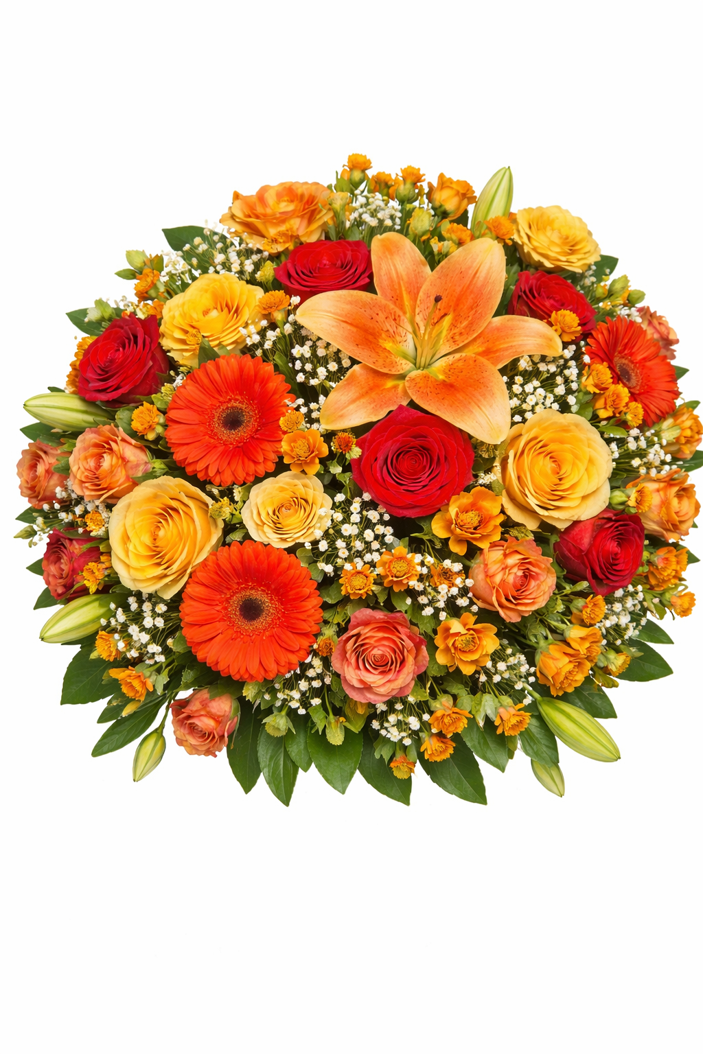 Cette composition florale ronde est une création harmonieuse pensée pour accompagner un dernier hommage avec douceur et respect. Réalisée avec des fleurs fraîches soigneusement sélectionnées, elle exprime la tendresse des souvenirs et la sincérité des émotions.